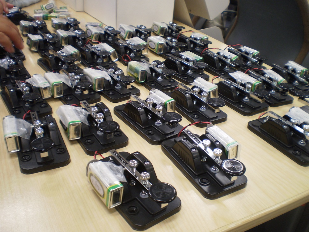 去る7月22日(日)は科学技術館(千代田区)に於いて開催されたJARDのイベント小中学生向けイベント「第6回アマチュア無線ってどんなもの?」で、黒木青少年科学対策委員長と数名の東京都支部役員、サポーターがモールス体験ゲーム、AM/FMの『箱ラジ』工作教室のサポートを行いました。 事前にJARDに申し込んだ34名のお子さんが参加しました。アマチュア無線機器メーカー、アンテナメーカーなどの展示が行われました。また、仙石事務局担当は、特小で無線通信を、ゲストの槇野汐莉さん(JH1RNQ)と模擬交信を行いました。写真は子供たちが工作した『箱ラジ』と子供たちの使用する電鍵。