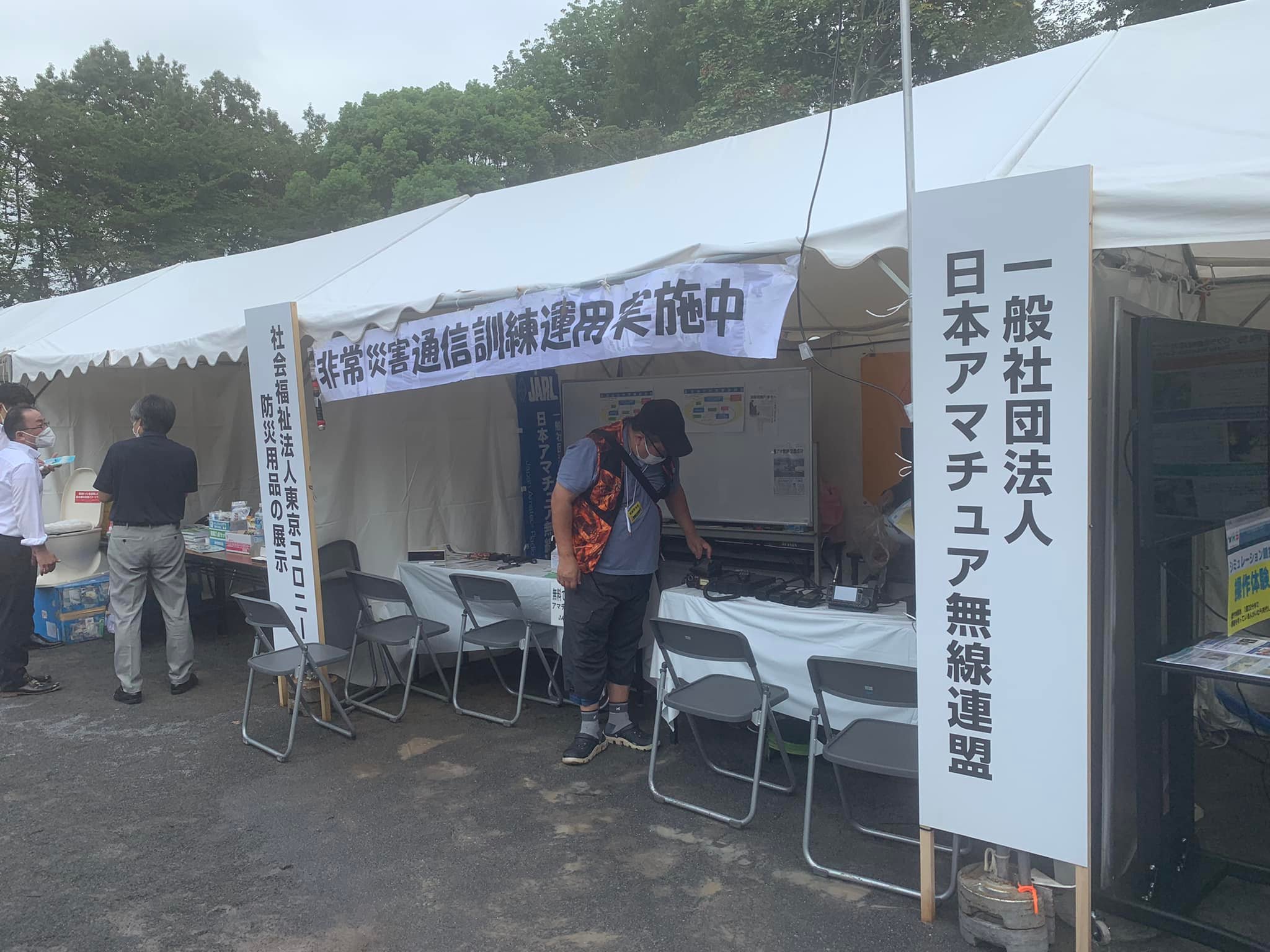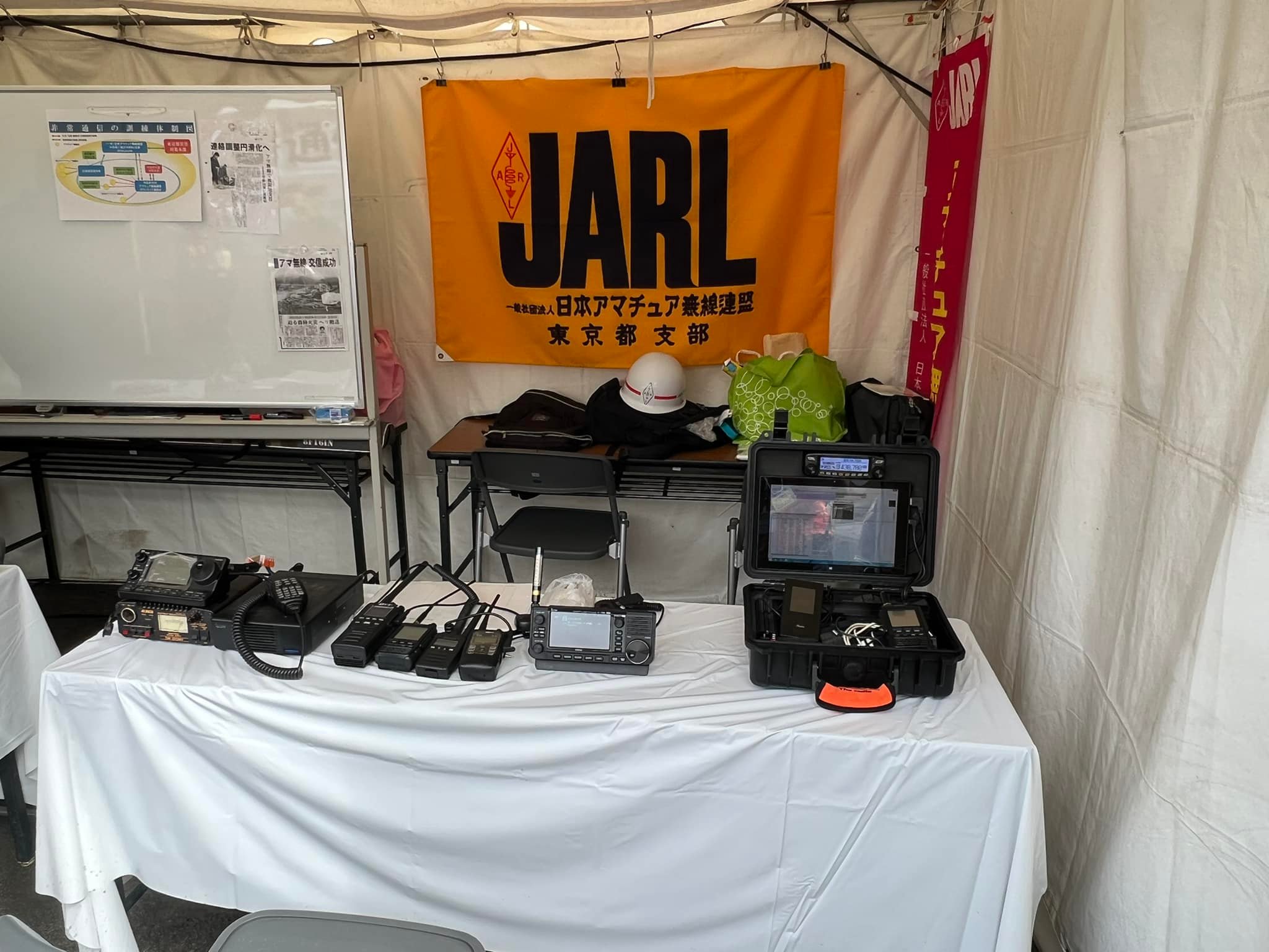 JARL東京都支部のほか、警視庁、東京消防庁、自衛隊、地元の消防団や自治会など災害時に活躍する組織の展示の他、組織間の連携の確認が行われました。
