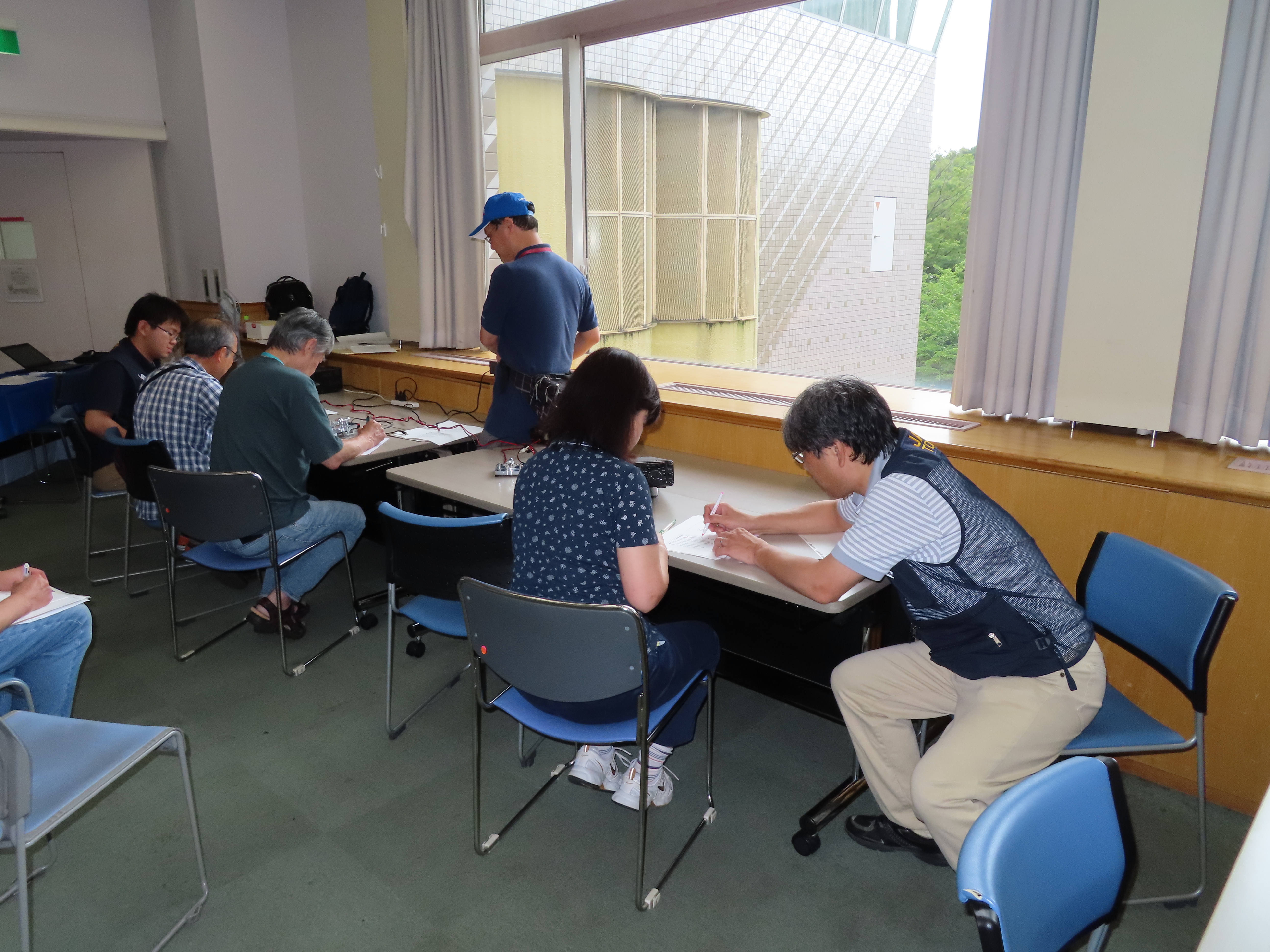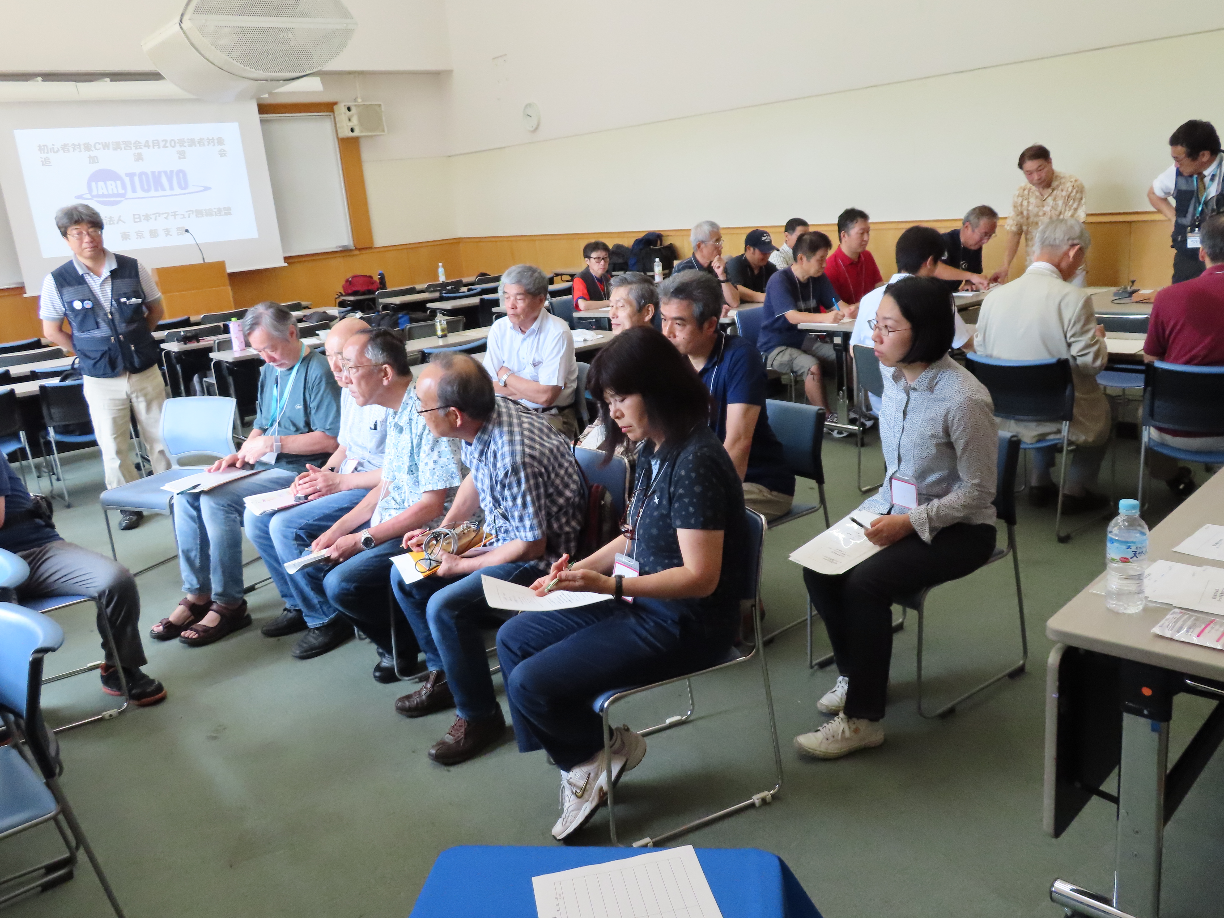 7月27日(土)に国立オリンピック記念青少年総合センター(渋谷区)で4月20日に行われましたCW初心者講習会の1回目のフォローアップ講習会を実施しました。これまで東京都支部では初めての取り組みです。講習には前回のCW初心者講習会に参加されました方の約半分の20名が参加しました。フォローアップの目的はCWに実際に出て頂くことが目的ですので、ラバースタンプと599BKスタイルの2つのレベルを用意し、受付時に自己申告をしてもらい、ラバースタンプは模擬交信の実戦形式、599BKスタイルは最低限の覚えるべき符号のプレゼンを含め、599BKスタイルの模擬交信を行いました。模擬交信を担当した講師陣がその方の苦手な符号や打ち方を含め適宜アドバイスを行いました。多くの方が東京都支部の講習会で学んでいただき、CWを楽しんでいただけることを願っております。 次回2回目のフォローアップ講習は 10月19日(土)に国立オリンピック記念青少年総合センター(渋谷区)で実施します。2回目はその翌週にある東京CWコンテストに出て頂けるようにコンテストについての要素を含む予定です。