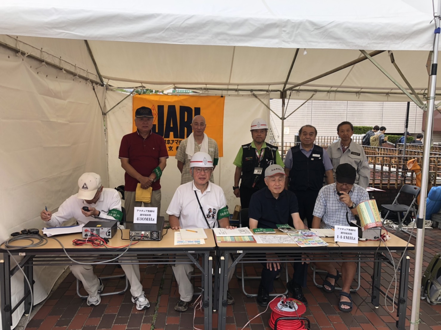 去る令和元年9月1日(日)令和元年度東京都・多摩市合同総合防災訓練が多摩市多摩センター駅(パルテノン大通り)周辺で実施され、当支部防災対策委員とJARL登録クラブ「多摩無線クラブ(JH1ZMK)」のみなさまの協力を頂いて、アマチュア無線の紹介とクラブ局の公開運用が行われました。当日はハムフェア2019の東京都支部有志ブースと防災訓練会場をVoipシステムでつなぎ複数の通信方法により情報伝達の通信を行いました。交信いただいたみなさんありがとうございました。