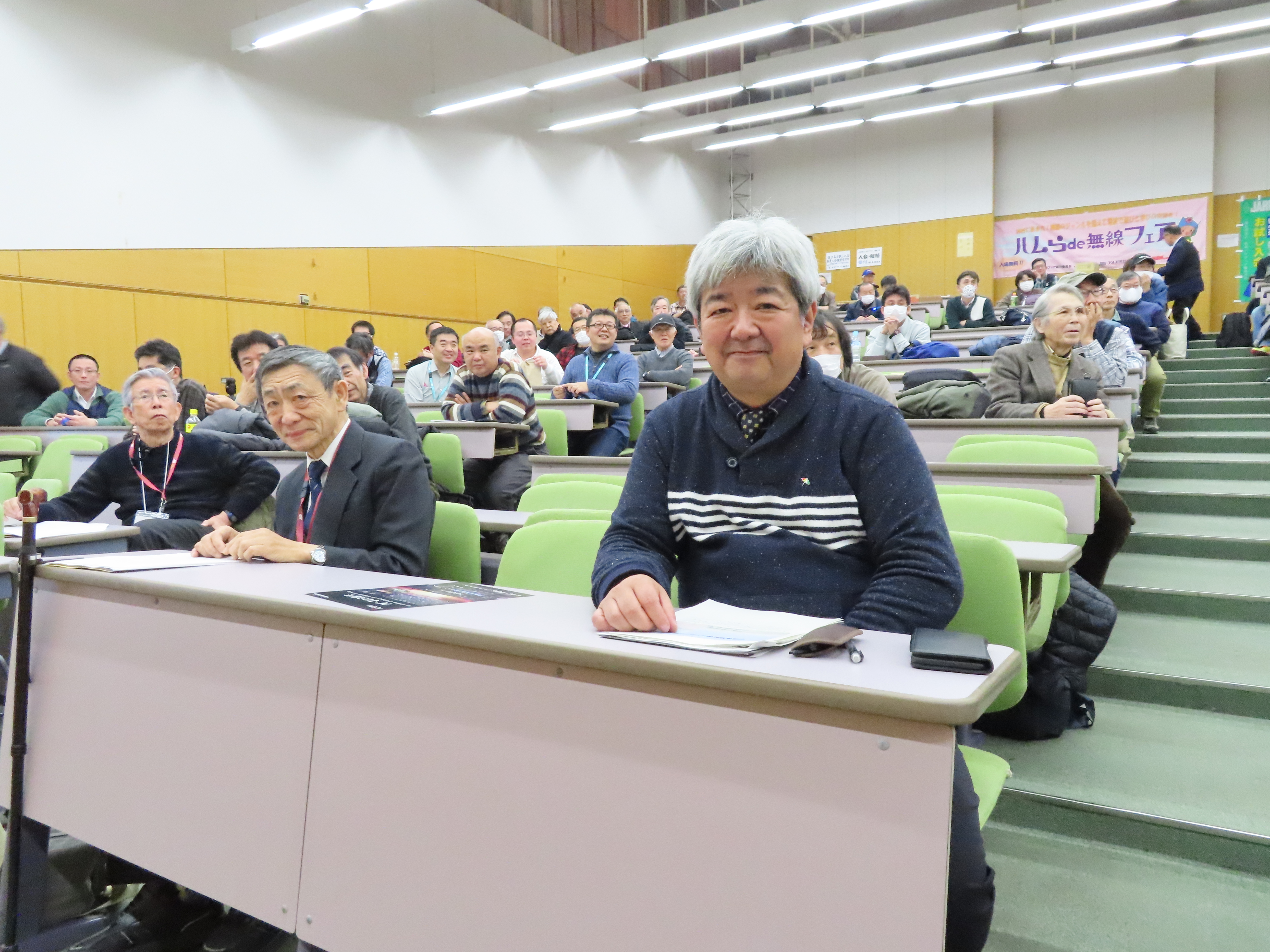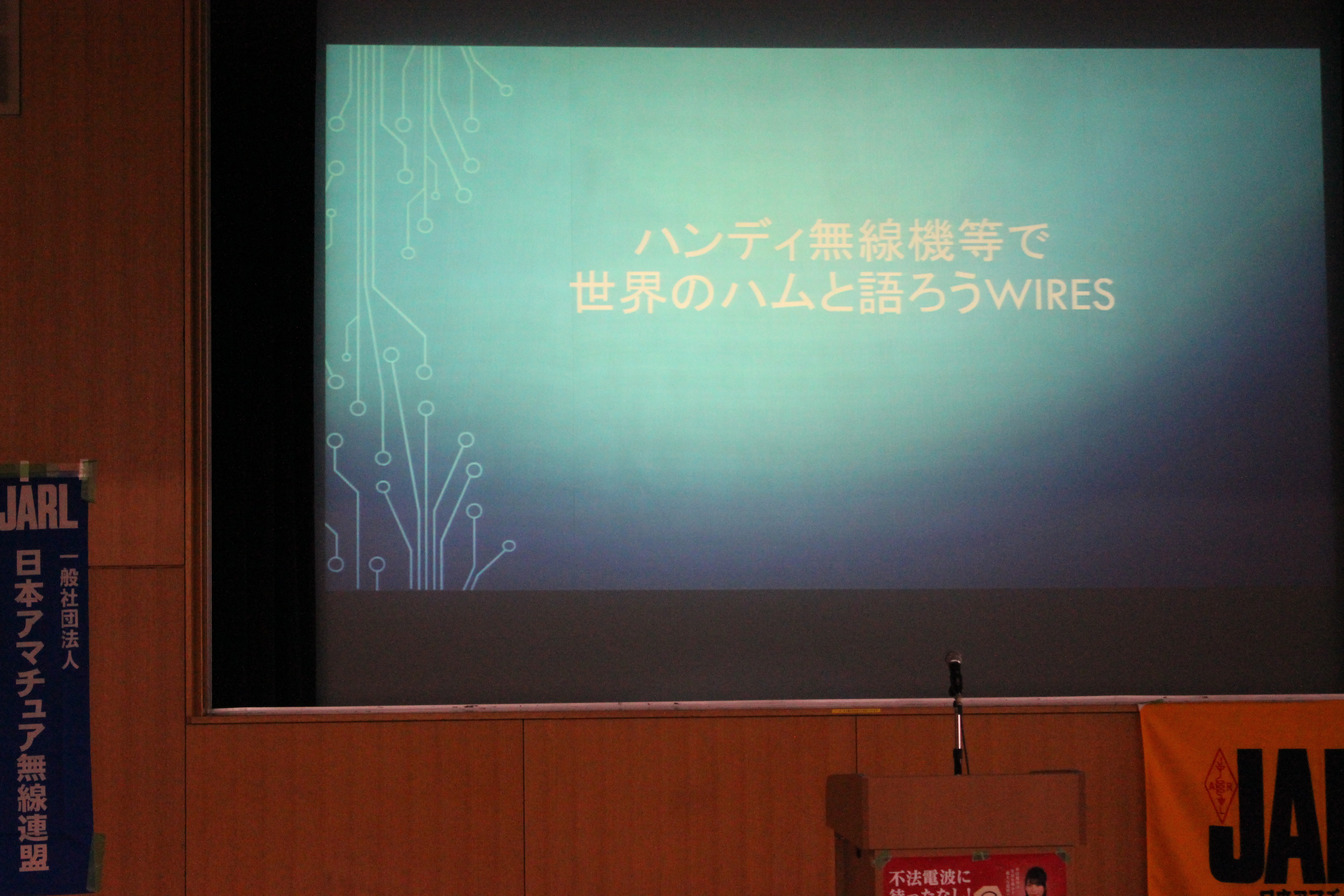 さらに休憩後、記念セミナーでは「ハンディ無線機等で世界のハムと語ろうWIRES」と題して月刊CQ誌エディターのJK1MVF高田栄一様にWIRESを使った通信について講演、北海道のハムと実際にWIRES-Xで交信するデモンストレーションをしていただきました。